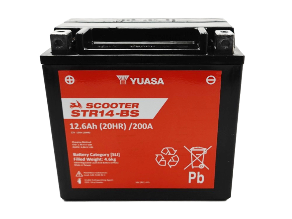 Yuasa STR14-BS AGM Scooter Batterie 12V 12AH CP - Einbaufertig (YTX14-BS FTX14-BS GTX14-BS)