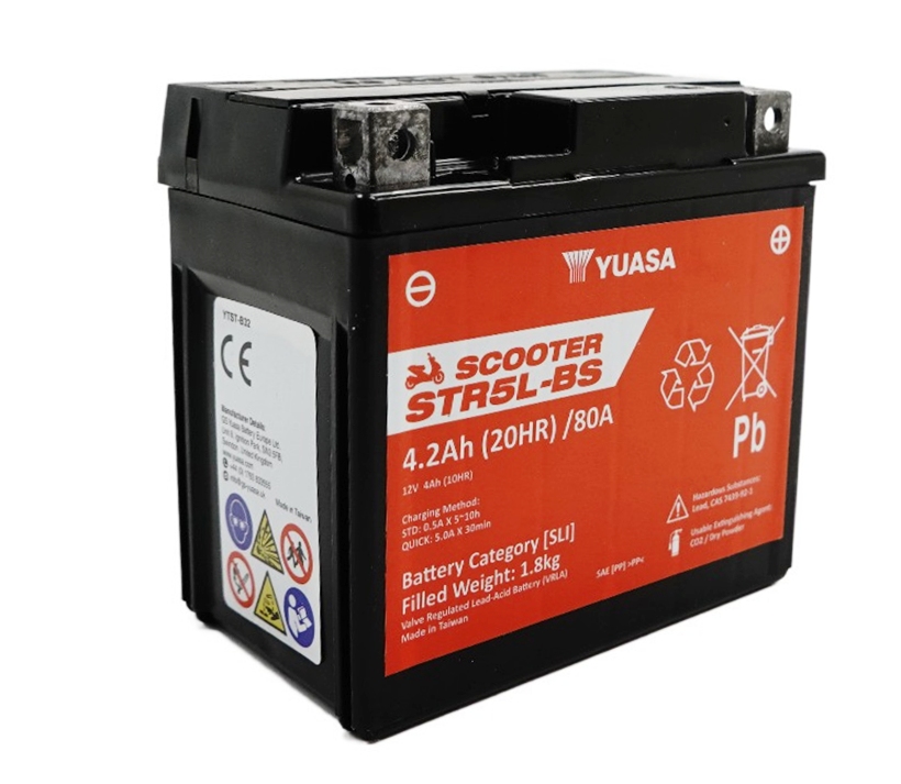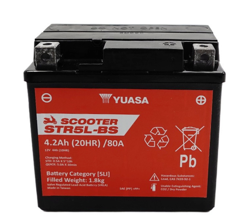 Yuasa STR5L-BS AGM Scooter Batterie 12V 4AH CP - Einbaufertig (YTX5L-BS CTX5L-BS FTX5L-BS GTX5L-BS)