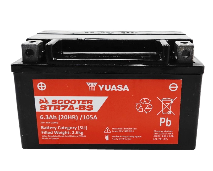 Yuasa STR7A-BS AGM Scooter Batterie 12V 6AH WC - Einbaufertig (YTX7A-BS GTX7A-BS FTX7A-BS)