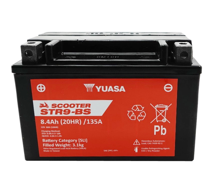 Yuasa STR9-BS AGM Scooter Batterie 12V 8AH CP - Einbaufertig (YTX9-BS GTX9-BS FTX9-BS CTX9-BS)