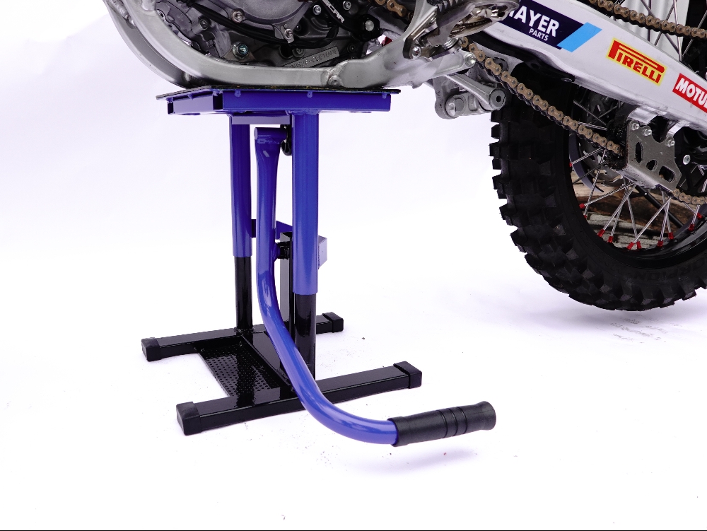 Motocross und Enduro Montageständer in hoher Qualität mit einer stabilen Konstruktion und einer großen Gummierte Auflagefläche für absolute Stabilität.
