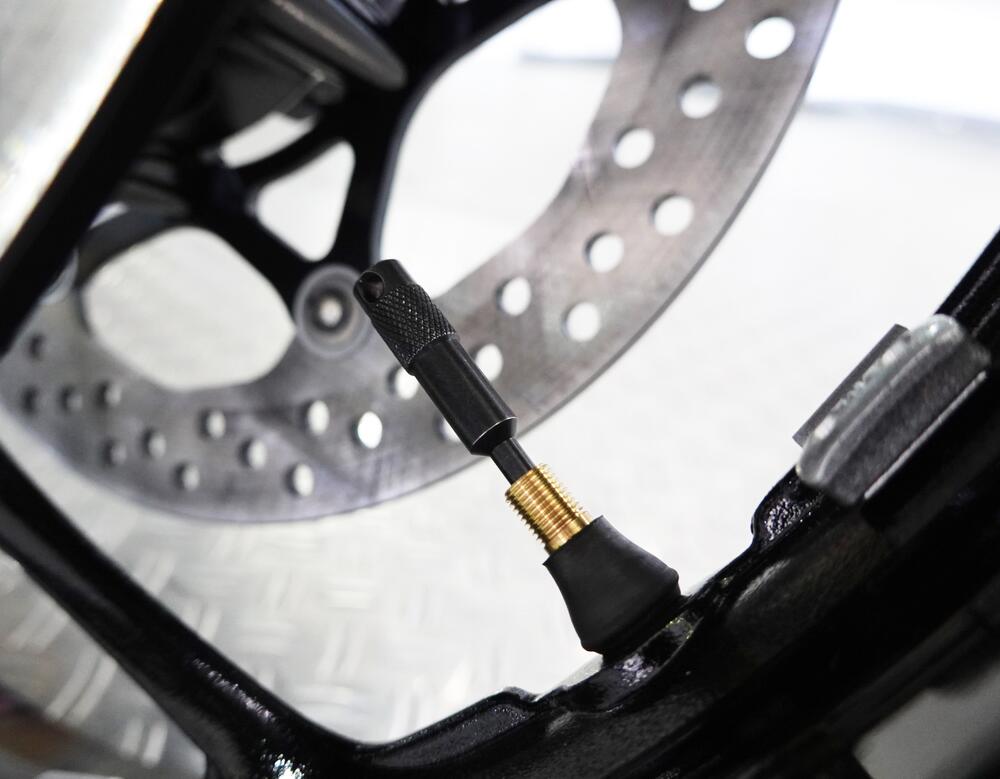 Die schmale Bauform passt perfekt zwischen den Speichen und ist ideal für Motorräder geeignet.
